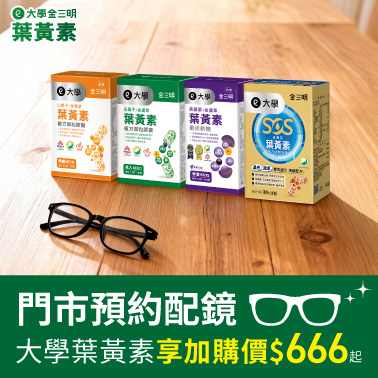 活動期間於大學眼鏡門市配鏡,購買大學葉黃素即享活動加購價!