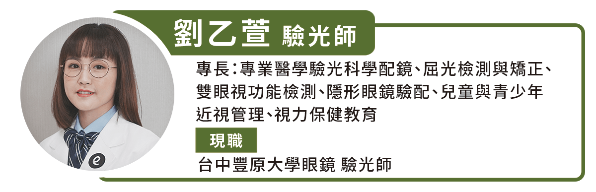現代人的工作型態多元,鏡片也需要更精準的配置。劉乙萱驗光師舉例:- 開車族:以遠距離清晰度為主,可選擇遠中近通用型鏡片。